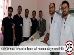 (HABERAL25) ) - Bitlis'te meydana gelen iş kazasında bir işçinin omuz hizasından kopan kol, adeta zamanla yarışılarak Erzurum'da başarılı bir operasyonla yerine dikildi.