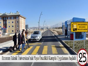 Erzurum Teknik Üniversitesi kampüsü sınırları içerisindeki tüm yollarda yayaların geçişte öncelikli olduğu ve araçların yayalara yol vermek için bekleyeceği "Yaya Öncelikli Kampüs" uygulaması hayata geçti.
