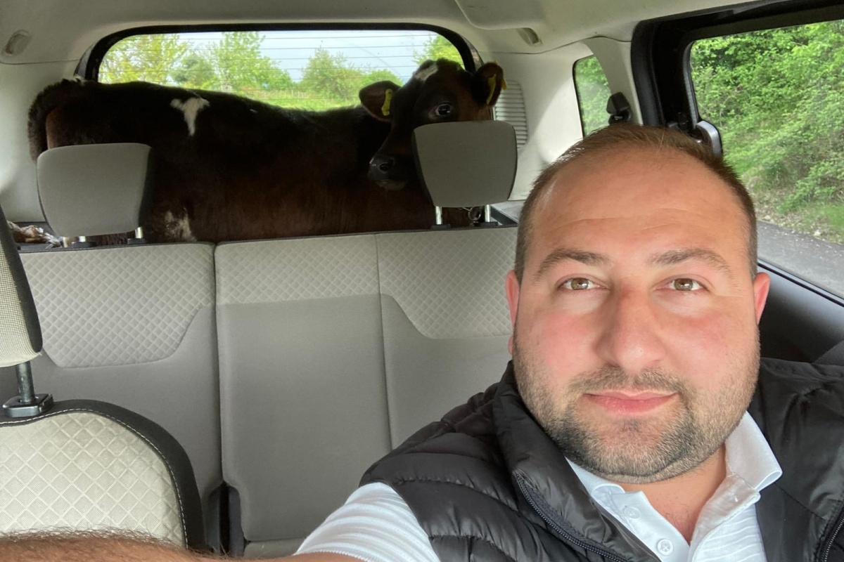 Kasap işletmeciliği yapan Çalık, “Dün hafif ticari aracım ile ilçemizde bulunan bir mahalleye et götürmüştüm. Oradan döndüğüm esnada hayvan ticareti yapan bir ağabeyime satılık hayvan var mı diye sordum. O da bana 3 aylık bir dana buzağı olduğunu söyledi. Daha sonrasında pazarlık yaparak anlaştık. Ancak o esnada yanımda kamyon olmadığı için mecburen hafif ticari aracıma koyarak getirdim. Yolda gelirken fotoğraf ve videolar çektim. Onu sosyal medyamda paylaştım, güzel bir yolculuktu yani” dedi.