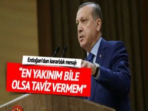 Cumhurbaşkanı Recep Tayyip Erdoğan, Cumhurbaşkanlığı Külliyesi'nde TBMM Dışişleri ve AB Uyum komisyonları üyeleriyle kahvaltıda bir araya geldi. Erdoğan, terörle ve paralel devlet yapılanması ile mücadele konusunda, "Bölgedeki operasyonlar kararlılıkla devam edecek. Geri adım söz konusu olmaz. Paralel'le mücadele bizim vazgeçilmezimizdir. Bu konuda en yakınım bile olsa taviz vermem. Mücadele bir aksaklık olursa, buna neden olanla ilgili gereğini yaparım" dedi.