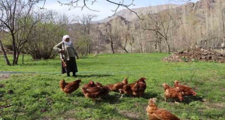 Çakalların tavuklara saldırdığını ifade eden Gülistan Kurt, "Çakallar, tavuklarımızın kuyruklarını koparttı. 15-20'ye yakın tavuğumuzu götürdü, komşularında tavuklarını götürdü. Ben de şimdi tüfek omzumda çobanlık ederek tavukları dışarıda dolaştırıyorum" dedi.