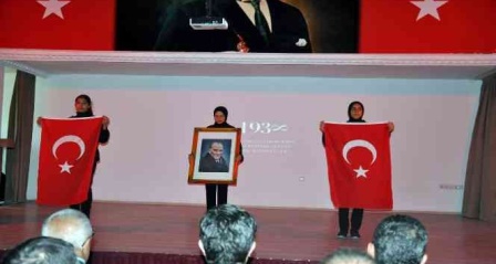 Pasinler Anadolu Lisesi çok amaçlı salonunda Ulu Önder Mustafa Kemal Atatürk'ü anma programında okul öğrencileri tarafından oratoryo gösterisi, şiirler ve Ulu Önder Atatürk'ün hayatından kesitler anlatıldı.