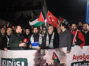 Kalabalık adına bir basın açıklaması yapıldı. Kalabalık adına açıklamayı okuyan Anadolu Gençlik Derneği İstanbul Şube Başkanı Yunus Genç, bu gece Filistin halkını yalnız bırakmamak ve Kudüse sahip çıkmak ve olup bitenlere dikkat çekmek için toplandıklarını belirtti.