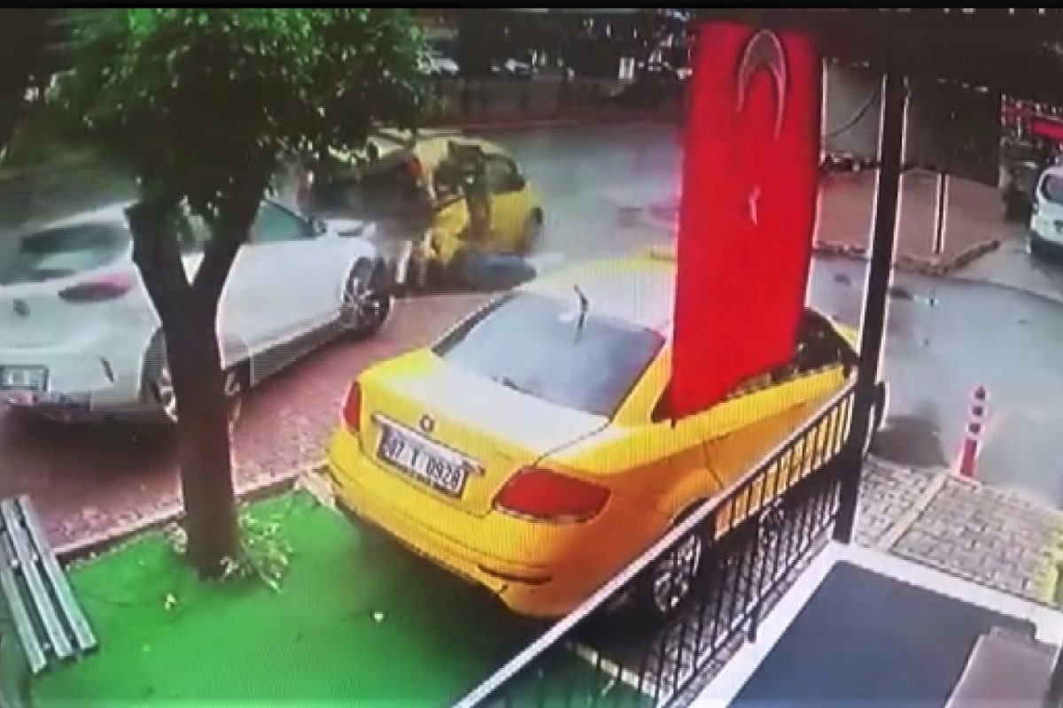 Kaza anları bir işyerinin güvenlik kamerası tarafından saniye saniye kaydedildi. Görüntülerde taksicinin aracını temizlediği ve bir süre sonra hızla gelen aracın çarpması ile önce savrulduğu, sonra sürüklendiği görüldü. Öte yandan kaza öncesi hemen olay yerinden geçen bir kişinin ise ölümden saniyeler ile kurtulduğu görüldü.