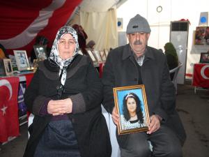 DİYARBAKIR (İHA) - Çocuklarının terör örgütü PKK mensupları tarafından dağa kaçırıldığı iddiası ile HDP Diyarbakır İl Başkanlığı önüne gelen ailelerin sayısı her geçen gün artmaya devam ediyor. Malatyadan Diyarbakıra gelen anne Nurten Şeker kızını çok özlediğini ifade ederek, "Kızım dön, yuvana gel. Ne olursa olsun gelsin onun yanındayız yeter ki kaçıp teslim olsun" dedi.