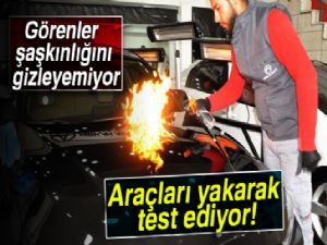 Araba sevdasının hobi olduğunu, kısa zamanda açtığı iş yerini profesyonel bir uygulama merkezine çevirdiklerini belirten Serkan Akgöz, ''Seramik kaplamanın yapım ve uygulama amacı, aracı tam anlamıyla çelik bir zırha dönüştürmek. Araçları dış etkenlerden koruyan bir uygulamadır. Aracına değer veren müşterilerimiz araçlarına seramik kaplama uygulaması olsun koltuk koruma uygulaması olsun bu tarz seçenekleri tercih ediyor. Şuan uygulama merkezimizde en çok rağbet gören uygulama seramik kaplama uygulaması. Şimdi araçlarımızın sağlamlığını test etmek için böyle bir uygulama yapıyoruz. Müşterilerimize seramik kaplamanın araçlara nasıl fayda sağladığını göstermek için, seramik kaplam yaptığımız lüks araçları gözleri önünde yakıyoruz. Yanan aracın boyasında derin bir yanık oluşacaktı. Ama bizim yaptığımız işlemle yanan yeri bezle sildiğimiz de eski haline dönüyor. Yapılan seramik kaplama ile araçlar tam anlamıyla bir zırha bürünmüş oluyor'' dedi.