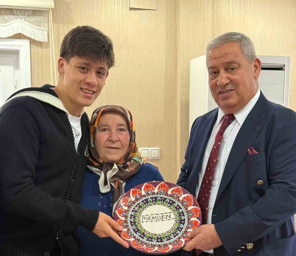 İspanya ekibi Real Madrid’in genç yıldızı Arda Güler, Bolu’ya geldi. Hafta arasında Bolu’nun Mengen ilçesinde babaannesi ve dedesini ziyaret eden Güler, bir süre aile büyükleriyle vakit geçirdi. Mengen Belediye Başkanı Vural Turan’ı da ziyaret eden Güler, Başkan Turan’dan ‘Mengen’ yazılı porselen tabak hediyesi aldı. Bolu’dan ayrılan Güler’in ayrıca Bolu’nun doğa harikası Gölcük Tabiat Parkı’nı da ziyaret ettiği öğrenildi.