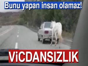 Sabah saatlerinde karayolunda ilerleyen sürücüler, otomobilin arkasına iple bağlı atı gördü. Sürücüler şaşkına döndükleri manzarayı cep telefonları ile kaydetti. Görenlerin tepkisine yol açan sürücü ise tepkilere aldırış etmeden arkasına at bağladığı otomobil ile yoluna devam etti.