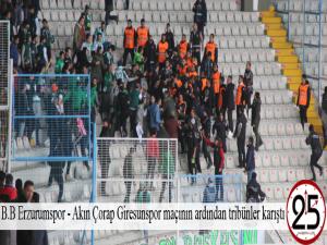 Kazım Karabekir Stadyumu'nda oynanan ve Büyükşehir Belediye Erzurumsporun 5-4lük galibiyetiyle sona eren maçın ardından Akın Çorap Giresunspor taraftarları taşkınlık çıkardı. Erzurumspor taraftarlarının bulunduğu alana doğru stat koltuklarını söküp fırlatan Giresunspor taraftarlarına polis müdahale etti.