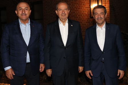 Haberal25 –Dışişleri Bakanı Mevlüt Çavuşoğlu, Birleşmiş Milletler 77. Genel Kurulu'na katılmak için geldiği New York’ta, KKTC Cumhurbaşkanı Ersin Tatar ve KKTC Dışişleri Bakanı Tahsin Ertuğruloğlu ile bir araya geldi.