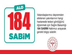 Sağlık Bakanı Koca, resmi Twitter hesabından yaptığı açıklamada, "Vatandaşlarımız, depremden etkilenen yakınlarının hangi hastanede tedavi gördüğünü öğrenmek için 184 SABİM hattımızı arayarak gerekli bilgiyi alabilir" ifadelerini kullandı.
