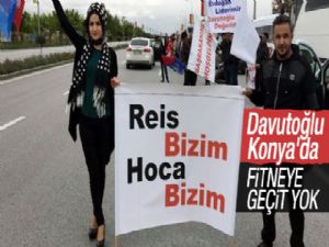 Başbakan Ahmet Davutoğlu, özel uçak 'DAP' ile saat 11.10'da Konya'ya gitti. Davutoğlu'nu yaklaşık bin araç konvoyla 2 binin üzerinde partili karşıladı.