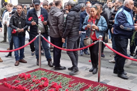 Haberal25 –Beyoğlu'nda meydana gelen saldırıda 6 kişi hayatını kaybetmiş, 81 kişi de yaralanmıştı. Sabahın ilk saatlerinde patlamanın olduğu yere gelen vatandaşlar hayatını kaybeden 8 kişinin anısına karanfil bıraktı.