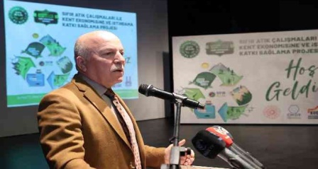 “Sıfır Atık Çalışmaları ile Kent Ekonomisine ve İstihdama Katkı Sağlama Projesi” tanıtım programında konuşan Büyükşehir Belediyesi Genel Sekreteri Zafer Aynalı, Büyükşehir Belediyesi'nin Sıfır Atık Yönetimi hakkında bilgiler verdi.