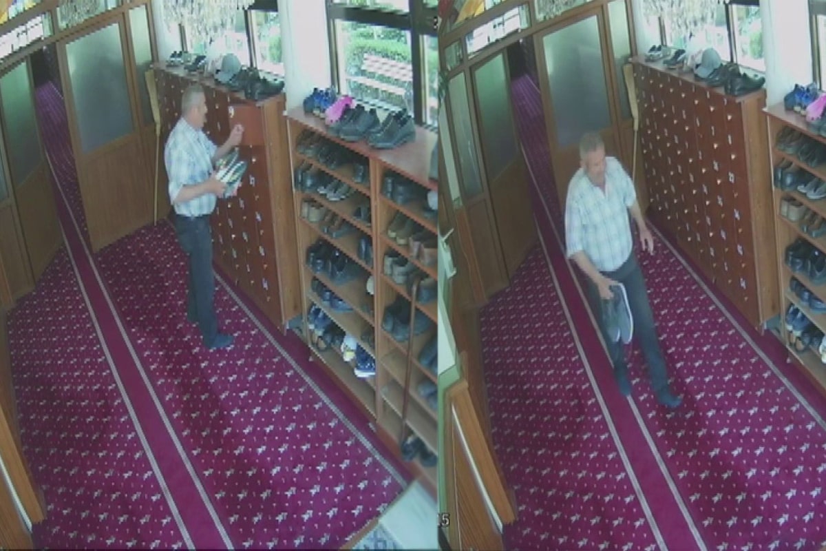 Görüntülerde, kimliği henüz belirsiz kişinin, geldiğinde tek tek dolaplardaki ayakkabılara baktığı, yanında getirdiği eski bir ayakkabıyı dolaba koyarak, namaz kılmadan hızlı bir şekilde başka ayakkabıları alıp camiden ayrıldığı görülüyor.