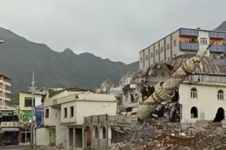Haberal25-Batman’ın Sason ilçesinde 50 yıl önce yapılan caminin yıkılmasıyla hasar alan minaresi, kontrollü olarak yıkıldı.