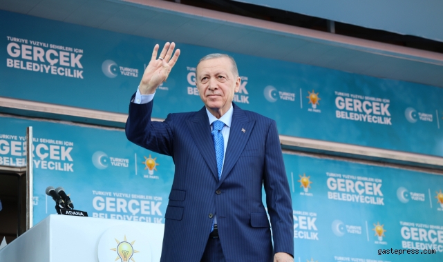 Erdoğan, 31 Mart Mahalli İdareler Seçimleri öncesi Adana’da Uğur Mumcu Meydanında halka hitap etti. Erdoğan, burada yaptığı konuşmada, “Harbiliğin, delikanlılığın kitabını yazan Adama, bugün bir başka güzel, feda ve vefakarlığı baş tacı bilen ağzı dualı büyüklerimizin şehri Adana’yı Türkiye yüzyılı vizyonumuzun lokomotif şehri olarak görüyoruz. Nice dağdan aşan yollar bizimdir diyerek gök kubbeyi milli seçimimizde çınlatan, gönül tellerimizi titreten deyişleriyle Toroslar’ı ve Çukurova’yı vatan yapan aşıkların şehrine de böylesi yakışır. 31 Mart’ta Cumhur İttifakı’na verdiği destekle Adana inşallah yeni bir destan yazacak. Şöyle dedim bana bir resmi rakamı alın. Bakalım meydanda durum nedir. Rakamı aldım. Şu anda Adana’da, meydanda 75 bin kişi var” diye konuştu.