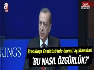 Erdoğan, Brookings Enstitüsündeki konuşmasına, Diyarbakır'da güvenlik güçlerini hedef alan terör saldırının gerçekleştiğini belirterek başladı.