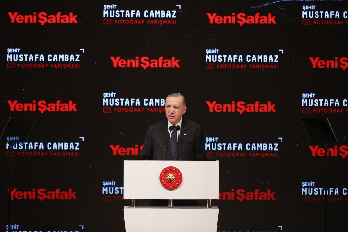 Cumhurbaşkanı Erdoğan, yaptığı konuşmada, “Rabbim Mustafa kardeşimizi Peygamber Efendimize komşu eylesin. Tüm yakınlarına, ailesine ve Yeni Şafak çalışanlarına başsağlığı diliyorum. Bu sene ilkini gerçekleştirdiğimiz yarışmanın her yıl prestijini artırarak devam edeceğine inanıyorum. Jürimizin titiz çalışmasıyla belirlenen toplam 9 kişiye ödüllerini takdim edeceğiz. Şehidimizin mesleğine olan tutkusunun yanı sıra davasına, ülkesine, İslam ümmetine olan sevdasına bizzat şahitlik ettik. Zor da olsa sonunda ölüm de olsa hakkın, adaletin safında yer almayı tercih etti. Batı Trakya Türklerinden olan Mustafa kardeşimiz, mücadele vermiş cesur bir yürekti. Yunanistan'ın baskıcı politikalarına mücadele vermiş cesur bir yürekti. ‘Yunan'a askerlik yapmam' diyerek İstanbul'a göç ettiğinde ömrünün baharında bir gençti. İstanbul'u özellikle Boğaz'ı çok sever Türkiye'yi vatanı olarak görürdü. Son derece başarılı bir fotomuhabiriydi. Tüm Türkiye'yi adım adım dolaşarak 10 binin üzerinde fotoğraf çekmiştir. Meydanlara ilk koşan kahramanlar arasındaydı. 15 Temmuz gecesi düşünmeden fotoğraf makinesini almadan meydanlara koşan kahramanlar arasındaydı. Ruhunu bir dolara satmış FETÖ'cü hainler göğsünden vurarak şehit ettiler. 251 insanımız o gece bizlere istikbalimizi hediye ettiler. Göğüslerini siper eden tüm yiğitlerden Rabbim razı olsun. Bugün 85 milyon olarak üzerinde özgürce yaşadığımız bu topraklar bizlere aziz şehitlerimizin emanetidir. Ülkemiz aynı zamanda tıpkı Mustafa kardeşimiz gibi mazlum ve mağdurlara kucak açmış esenlik yurdudur. 40 yıldır siyaset arenasında kararlı bir mücadele yürütüyoruz. Zulüm 1453'te başladı diyenlere İstanbul fethini hazmedemeyen Bizans artıklarına inat bu güzel şehre sahip çıkıyoruz. İstanbul'u adeta ilmek ilmek dokuduk. Barbaros Hayrettin Paşa camiyi bu yılın sonuna doğru bitecek, o da hizmet verecek. Marmaray ve Avrasya tüneli iki kıtayı denizin altından birbirine bağlıyor” dedi.