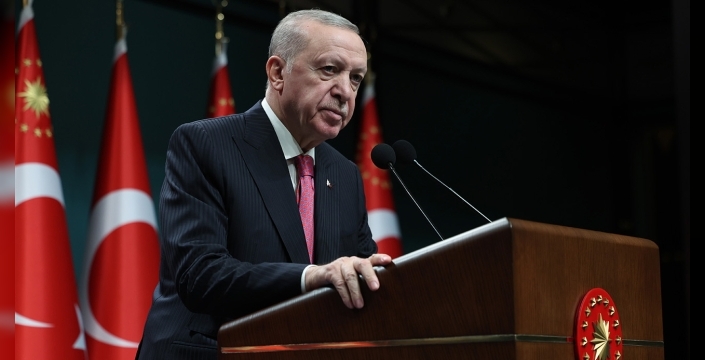 Erdoğan, gerek Türkiye için, gerek bölgedeki diğer ülkeler için adaletten, huzurdan, barıştan başka hiçbir gayelerinin olmadığının altını çizerek, "Kim olursa olsun hiçbir ülkenin egemenliğinde topraklarında gözümüz yok. Ama topraklarımıza göz diken, egemenliğimize kast eden ve dahi macera arayan olursa evelallah ona da hodri meydan demekten çekinmeyiz" diye konuştu.