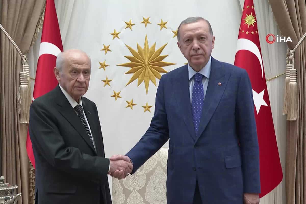 Cumhurbaşkanı Recep Tayyip Erdoğan, MHP Genel Başkanı Devlet Bahçeli ile bir araya geldi. Cumhurbaşkanlığı Külliyesi'ndeki kabul yaklaşık 1 saat sürdü.