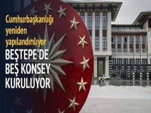Cumhurbaşkanı Recep Tayyip Erdoğan'ın talimatıyla bir süredir üzerinde çalışılan Cumhurbaşkanlığı'nın yeniden yapılanma çalışmalarında sona yaklaşıldı. Bu kapsamda Cumhurbaşkanlığı bünyesinde 5 ayrı konsey kurulacak. İlki ise Ekonomi ve Dış Ticaret Konseyi olacak ve önümüzdeki haftalarda çalışmaya başlayacak.