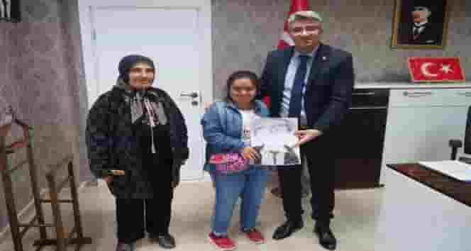 Haberal25-Down sendromu olan Kısmet Pala, yaptığı karakalem çalışmasını Şenkaya Kaymakamı Malik Çalışır'a hediye etti.