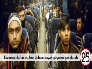 Erzurum İl ve İlçe Jandarma Komutanlığı ekipleri tarafından Yakutiye ilçesi Mülk Mahallesinde yapılan yol uygulamasında durdurulan bir yolcu otobüsünde yapılan aramada yasa dışı yollarla İran üzerinden Türkiye'ye giriş yaptığı tespit edilen 17 Afganistan, 13 Pakistan, 1 Afrika ve 1 Bangladeş uyruklu olmak üzere toplam 32 şahıs yakalandı.