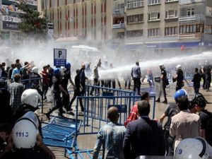 HDP Eşbaşkanı Selahattin Demirtaş'ın da katılacağı miting öncesi bir grup vatandaş ellerinde Türk bayrakları ile mitingin yapılacağı İstasyon Meydanına geldi. Alan girişinde polis barikatıyla karşılaşan grup ile polis arasında yaşanan gerginlik arbedeye dönüştü. Miting alanına gelen HDP'liler ile mitingin yapılmasına tepki gösteren şahıslar arasında yaşanan arbedede bir kişi linç edilmek istendi. Polis şahsı grubun elinden güçlükle kurtarabildi. Miting alanındaki HDP'li grup ile alan dışındaki grup arasında polis adeta etten duvar örerken, yaşanan gerginliğe tazyikli su ve gaz bombası ile müdahale etti.