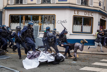 Fransa'da hayat pahalılığına yönelik protestolar devam ediyor. Genel Emek Konfederasyonu (CGT), İşçi Gücü (FO), Dayanışma (Solidaires), Üniter Sendikalar Federasyonu (FSU), Bağımsız ve Demokratik Liseler Federasyonu (FIDL) ve Fransa Ulusal Öğrenci Birliği (UNEF) gibi önde gelen sendikalar ve birliklerin çağrısı üzerine çok sayıda meslek grubu enflasyon, hayat pahalılığı, emekli ve işsizlik reformlarını protesto etmek için genel greve gitti. Başta başkent Paris'te olmak üzere birçok kentte aralarında öğrencilerin, öğretmenlerin, demiryolu ve sağlık çalışanlarının bulunduğu 100 binden fazla kişi gösterilere katıldı.