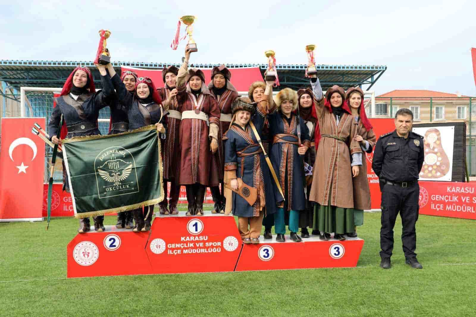 Bu yıl 6.’sı düzenlenen 2025 yılı Yurtlar Arası Spor Ligi (YURTLİG) Türkiye Birinciliği Geleneksel Türk Okçuluğu Şampiyonası’nın ödül töreni Karasu Şehir Stadı’nda gerçekleştirildi. Karasu Gençlik ve Spor İlçe Müdürlüğü’nün ev sahipliğinde düzenlenen organizasyona Türkiye çapında çok sayıda üniversite öğrencisi katıldı. Geleneksel Türk sporlarının yaşatılması ve sporcuların yaygınlaştırılması amacıyla düzenlenen etkinlikte, yarışmaların ardından katılan sporcular ödüllerine kavuştu. Ödül töreninde Karasu İlçe Kaymakamı Mehmet Uğur Arslan, Karasu Belediye Başkanı İshak Sarı’nın yanı sıra daire amirleri, antrenörler ve sporcular hazır bulundu. Protokol üyeleri, başarılı sporculara ödüllerini takdim ederek gençleri tebrik etti. Törenin ardından ilçe protokolü ok attı ve ata bindi.