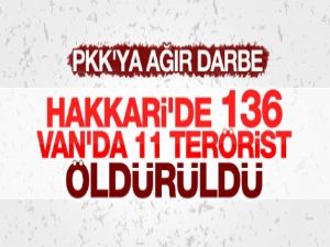 Hakkari'de 136 ve Van'da 11 terörist olmak üzere toplam 147 terörist öldürüldü.