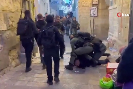İsrail polisi iki gün önce Mescid-i Aksa'ya gece saatlerinde baskın düzenleyerek Kıble Mescidi'ne sığınanlara karşı ses bombası ve kauçuk kaplı mermi kullanmış, içeridekileri copla darp ederek ters kelepçeyle gözaltına almıştı. Filistinliler ile İsrail güçleri arasında gerilim devam ederken İsrail güçleri Filistinlilere bir kez daha saldırdı. İsrail güçleri, sabah namazı için gelen Filistinlilerin Mescid-i Aksa'ya girişini engelleyerek Hıtta kapısında bekleyen Filistinlilere coplarla saldırdı. İsrail güçlerinin müdahalesi ile bazı Filistinliler bölgeden kaçarak uzaklaşırken bazıları da yere düştü.