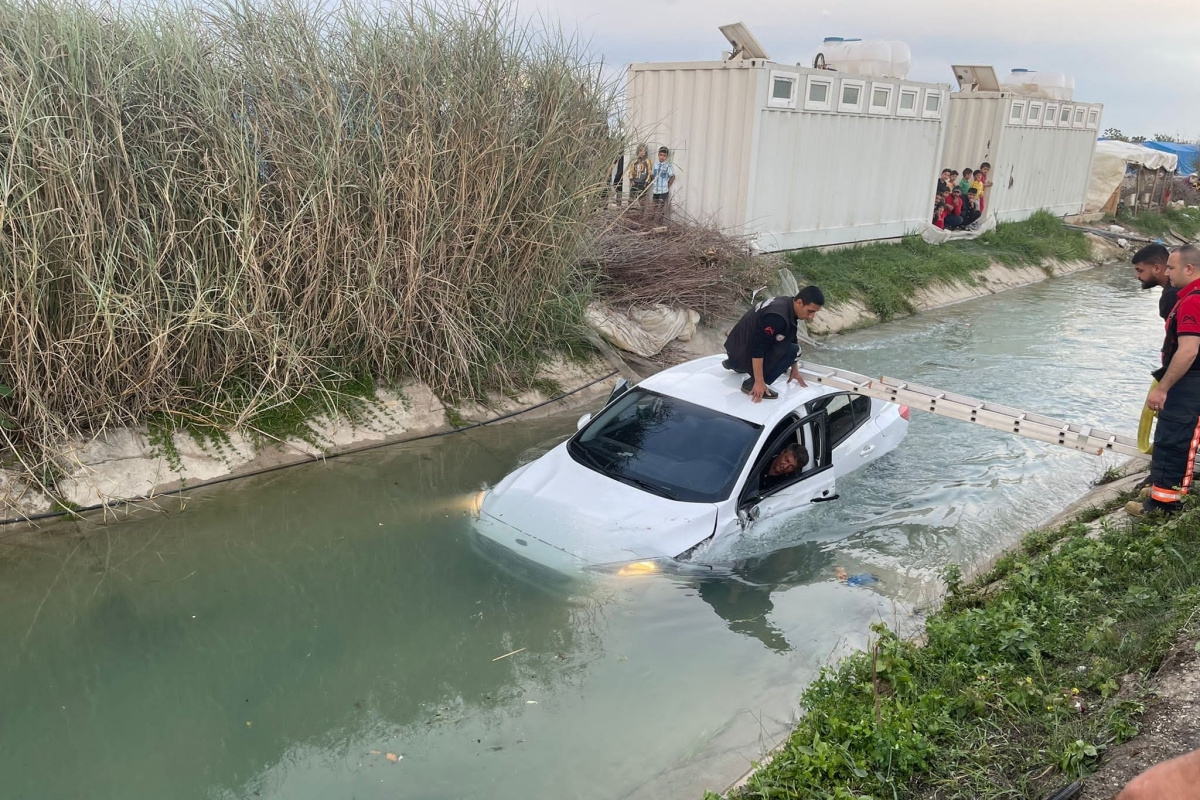 Haberal25 -Mersin'in Tarsus ilçesinde otomobil su kanalına uçtu, 2 kişi yaralandı.