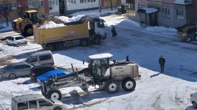 İlçenin bin 400 cadde ve sokağında karla mücadele çalışmalarını sürdüren ekipler, kar temizleme çalışmalarının ardından toplanan kar kütleleri kamyonlarla şehir dışına taşınarak cadde ve sokakların açık tutulması sağlanıyor.