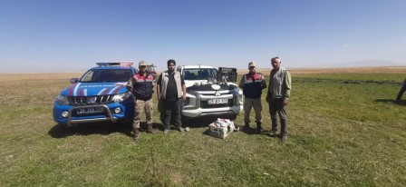 Doğa Koruma Milli Parklar (DKMP) Kars Şube Müdürlüğü ile jandarma ekipleri av koruma çalışmaları sırasında Selim’de Şahin avı yapan 2 kişiyi suçüstü yakaladı.