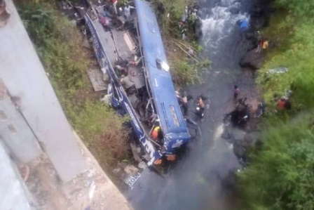 Haberal25 –Kenya’da Meru’dan Mombasa’ya giden yolcu otobüsünün Nithi Nehri üzerindeki köprüden geçtiği sırada yaklaşık 40 metre yükseklikten nehir yatağına düşmesi sonucu 24 kişi hayatını kaybetti.