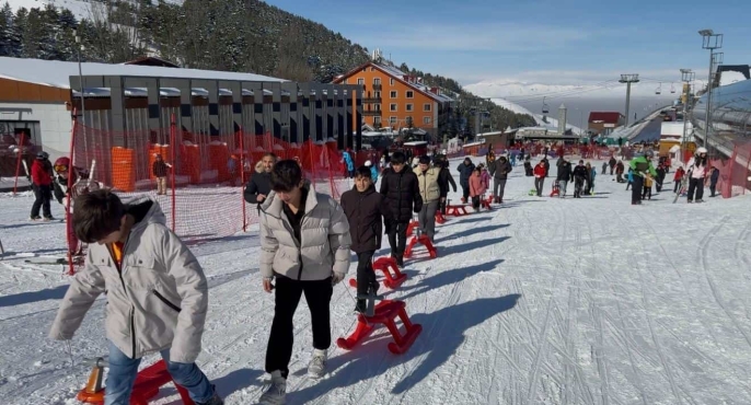 Erzurum’a 55 kilometre uzaklıktaki Aşkale’nin kırsal Çayköy, Büyükgecit ve YİBO’da eğitim gören 25 üğrenci yıllardır cefasını çektikleri karın belki de ilk kez keyfini Palandöken'de çıkardı. Erzurumlu iş insanı Ferit Kaya'nın, "Köy çocukları kış sporları ile tanışıyor" projesi kapsamında öğretmenleri ile minibüsle evlerinden alınarak Erzurum Palandöken'e getirildi. Kızaklara binen çocuklar attıkları sevinç çığlıkları ile bazen tek bazen de peş peşe kayarak eğlendi. Acemi pistinde yapılan kızağın ardından hemen sağ taraftaki gondol-lifte binen öğrenciler, Palandöken'e gezerek kuş bakışı izledi. Meraklı gözlerle etrafa bakan öğrenciler, zaman zaman heyecanlı anlar yaşadı