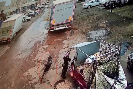 Güvenlik kamerasına yansıyan olayda, peşinden gelen köpekten kaçan çocuğa arabanın çarptığı görülüyor.