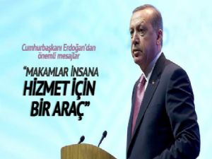 Cumhurbaşkanı Tayyip Erdoğan, dün Cumhurbaşkanlığı Külliyesi'ndeki 25. Muhtarlar Toplantısı'nda Amasya, Ankara, Antalya, Denizli, Edirne, Eskişehir, Gümüşhane, Kars, Kastamonu, Kocaeli, Kütahya, Malatya, Mersin, Muş, Nevşehir ve Niğde'den gelen muhtarlara hitap etti. "Makamlar insanlara hizmet için araçtır. Muhtar da olsanız belediye başkanı, başbakan, cumhurbaşkanı da olsanız kalbiniz ve zihniniz millete hizmet için çalışmalıdır" diyen Erdoğan, özetle şu çarpıcı mesajları verdi: