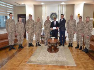 KARABÜK (İHA) - Karabük'ün Safranbolu ilçesinde bulunan 125'inci Jandarma Eğitim Alay Komutanlığı emrinde görevli personel tarafından Elazığ ve Malatyadaki depremzedeler için toplanan 129 bin 61 TL'lik yardım makbuzu Karabük Valisi Fuat Gürel'e teslim edildi.