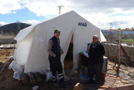 Kahramanmaraş merkezli depremlerin vurduğu Doğanşehir ilçesi Karşıyaka Mahallesi'nde yaşayan ve 5 yıl önce kredi çekerek aldıkları villaları depremde hasar gören Mehmet ve Sevgi Kubat çifti, evlerinin bahçesine kurdukları çadırda yaşıyor. İki depremi de Doğanşehir'de yaşayan Kubat çifti, yetkiler tarafından incelenen villanın orta hasarlı olarak tespit edildiğini belirterek deprem sonrası devletin her an yanlarında olduğunu söyledi.