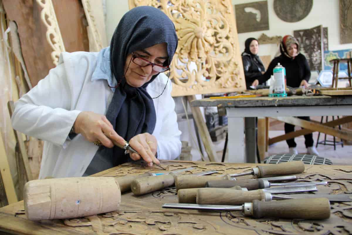 Kendi çevresinden hem eleştirilen hem de destek gören Ayşe Hasbek, “Eşim üniversiteye gelmeme çok destek oldu. Çocuklarımda aynı şekilde desteklediler, torunlarım çok memnunlar. Teknik resim sınavından 100, Matematik sınavından 30 alarak bütünleme sınavına kaldım. Çocuklarımdan çalıştırmalarını istedim. Anlamadığım için benden kaçıyorlardı. Sonra eşim beni 1 ay çalıştırdı. Sabah 7'den gece 1'e kadar çayımı, yemeğimi verdi. Ayşe otur çalış dedi. Eşimin sayesinde 86 puan ile geçtim. Torunum benim okuduğum bölümü seçeceğini söylüyor. Bazı arkadaşlarım sen hacısın niye gidiyorsun diyorlar. Bende ahşabı oyarken Allah'ım çok şükür sana diyorum. Ben her gün evden çıkınca gökyüzüne bakıyorum. Allah'ım sana teşekkür ederim çok şükür diyorum. Bu benim için çok büyük bir şey. Rabbim eriştirdi” şeklinde konuştu.