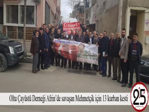 (HABERAL25) - Oltu Çayüstü Mahallesi Bursa Yardımlaşma Derneği, Afrinde ki Mehmetçiğe destek olmak için sınıra gitti. Dernek yönetimi Mehmetçik için 13 kurban kesti.