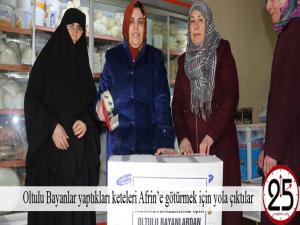 Oltulu bayanlar, bir araya gelerek bir haftadır Afrinde savaşan Mehmetçik için yaptıkları cevizli kete ve börekleri Hatay sınırına götürmek yola çıktılar.