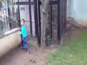 Oyun oynadığı esnada yanına yaklaşan biri "Havalanan uçak bomba atacak" diyerek küçük çocuğu korkuttu. Çocuk ise, korkudan sağa sola kaçmaya başladı. Küçük çocuğun yürek burkan korku dolu anları ise, amatör kamera tarafından kaydedildi: