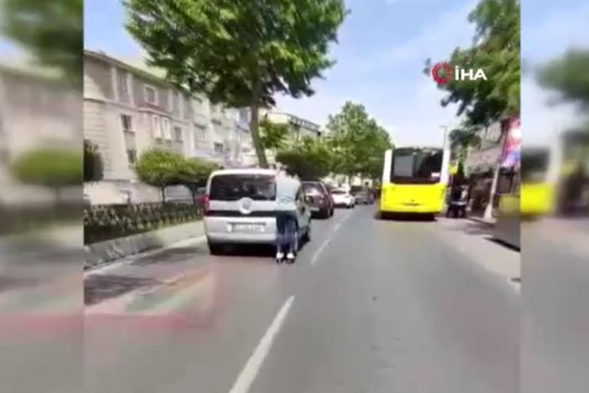 Haberal25 –İstanbul Fatih’te seyir halindeki otomobilin arkasına tutunarak giden patenli genç görenleri hayrete düşürdü. Gencin hem kendini hem de trafikteki diğer sürücüleri tehlikeye attığı anlar cep telefonu kamerasına yansıdı.