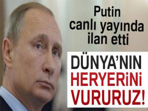 Rusya Devlet Başkanı Vladimir Putin, Federal Meclis üyelerine yaptığı yıllık konuşmasında dünyanın her yerini vurabilecek ve herhangi bir ülkenin savunma sistemi tarafından durdurulamayacak kıtalararası nükleer füze geliştirdiklerini söyledi.