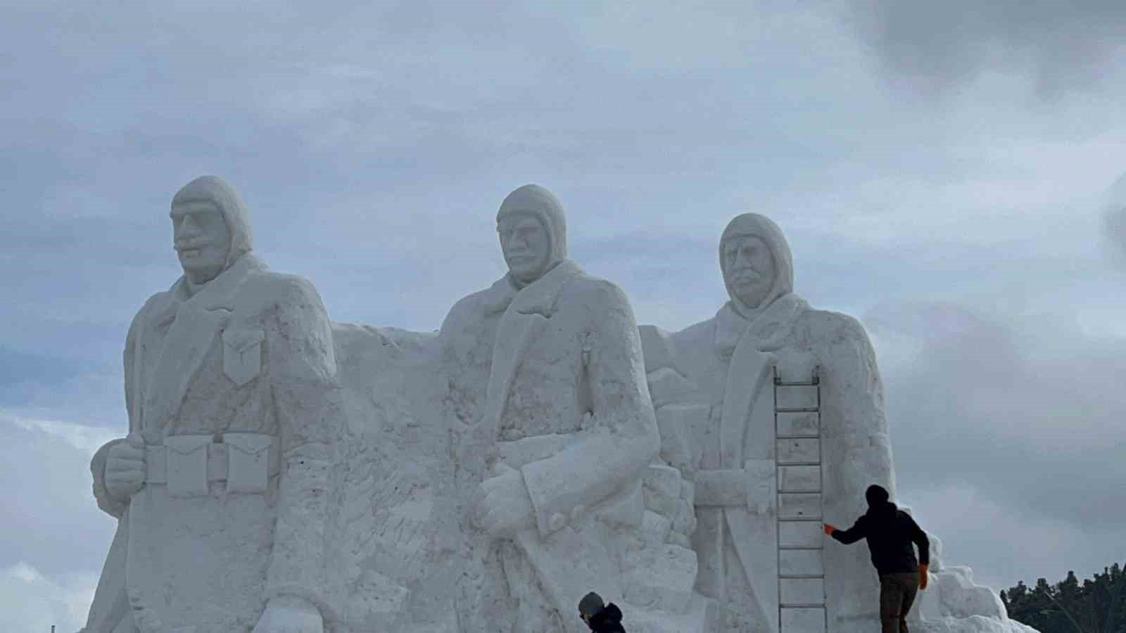 Haberal25-Yaklaşık 200 kamyon kar taşınarak, Sarıkamış Harekatı’nın 109. yılı anma etkinlikleri kapsamında sergilenecek kardan heykellerin son rötuşları yapılıyor.