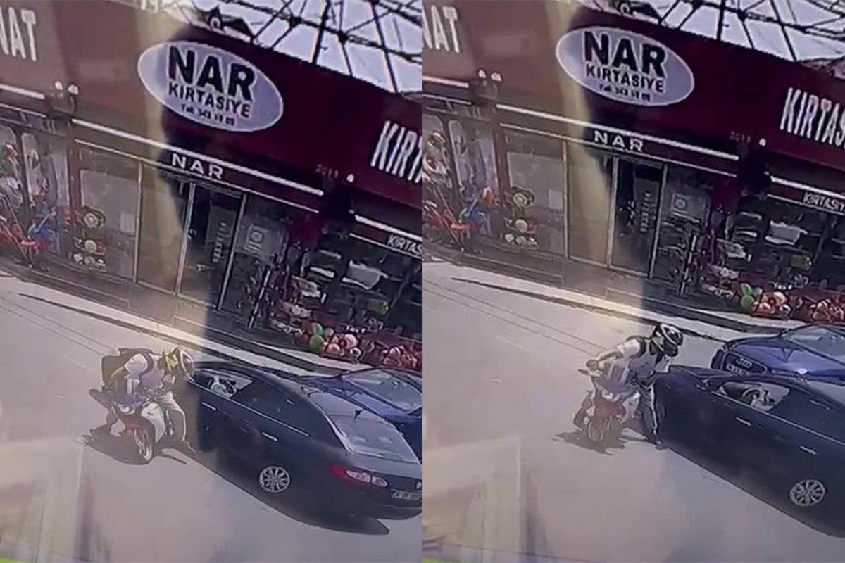 Haberal25 – Sarıyer’de önünden geçen arabalara yol veren otomobil sürücüsü, motosikletli geçtiği sırada hareket ederek, motosikletliye çarpıp yoluna devam etti. Motosikletli kazayı yara almadan atlatırken, yaşanan o ilginç anlar ise kameraya yansıdı.